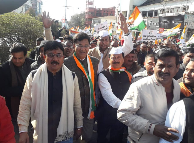 दून में कांग्रेस की संविधान बचाओ-भारत बचाओ पदयात्रा निकाली गई। पदयात्रा गांधी पार्क-घंटाघर-पलटन बाजार-राजा रोड होते हुए वापस कांग्रेस कार्यालय पहुंची।