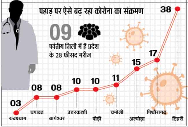 प्रदेश के सभी जिले अब कोरोना की चपेट में आ चुके हैं। पर्वतीय क्षेत्र के जिले कुछ दिन पहले तक वायरस के संक्रमण से अछूते थे। लेकिन, प्रवासियों की वापसी के बाद पहाड़ में भी इसकी दस्तक हो चुकी है। मंगलवार तक प्रदेश में कोरोना संक्रमण के जो चार सौ से अधिक मामले सामने आए हैं, उनमें 28 फीसद यानी 120 पॉजिटिव मरीज नौ पर्वतीय जिलों से हैं।