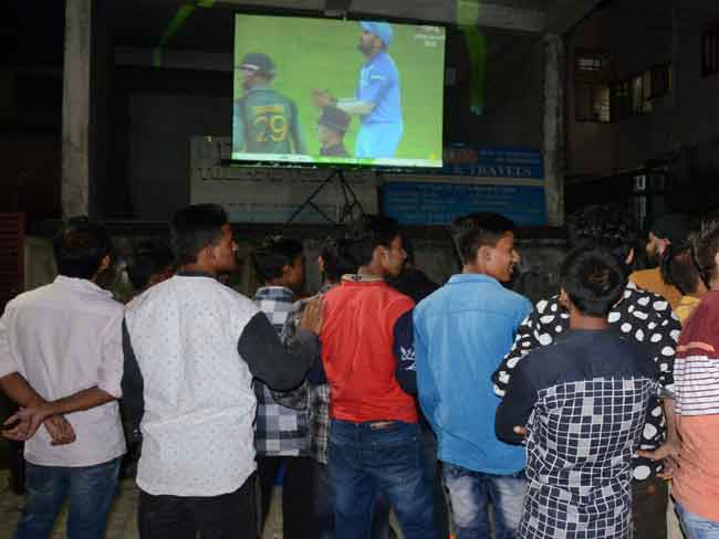 भारत पाकिस्तान के मैच को लेकर लोगों में सुबह से ही उत्साह था। हालांकि खेल प्रेमी पूरा मैच देखते नजर आए। शुरुआत में ही पाकिस्तान के दो बल्लेबाज आउट होने पर लोगों ने पाकिस्तान के 150 से कम के स्कोर पर सिमटने के कयास लगाने शुरू कर दिए थे।
