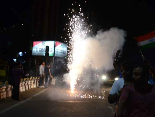 पाकिस्तान पर जीत के जश्न में सड़कों पर उतरे क्रिकेट प्रेमी, खूब की आतिशबाजी