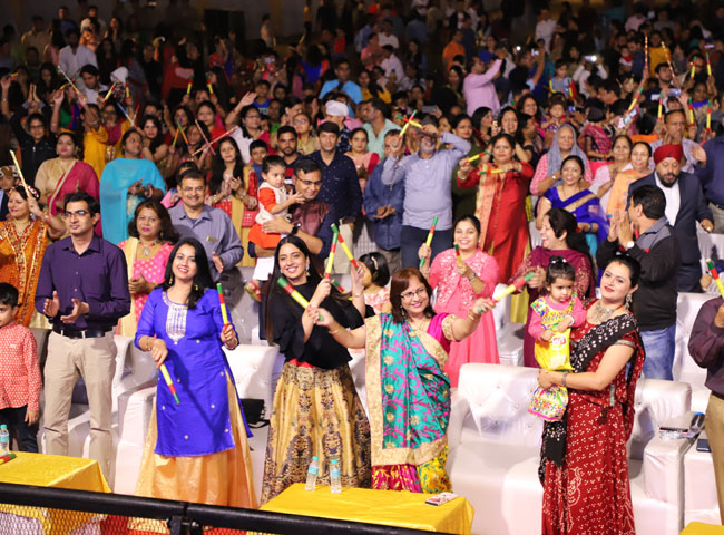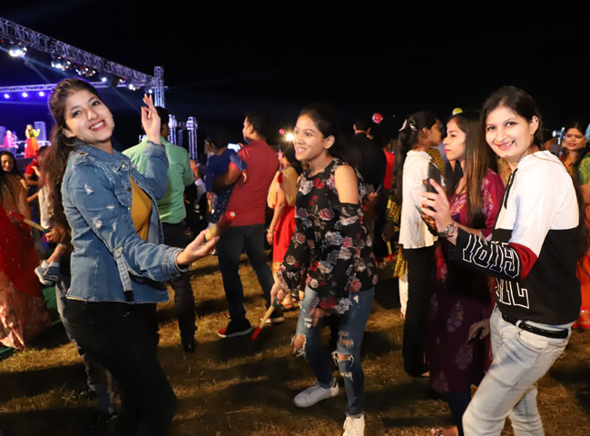 सोमवार की शाम खुशी के इन पलों में शामिल होने के लिए बड़ी संख्या में लोग अपने परिवार के साथ सर्वे स्टेडियम हाथीबड़कला पहुंचे। लोगों के उत्साह का अंदाजा इसी बात से लगाया जा सकता है कि ग्राउंड के गेट से लेकर मंच तक लोग झूमते नजर आए। हर किसी की बस एक ही फरमाइश आज पूरी हो जी भर कर डांडिया खेलने की ख्वाहिश। जैसे-जैसे शाम अपने शबाब पर चढ़ती रही हर चेहरे पर खुशी की चमक नजर आने लगी।