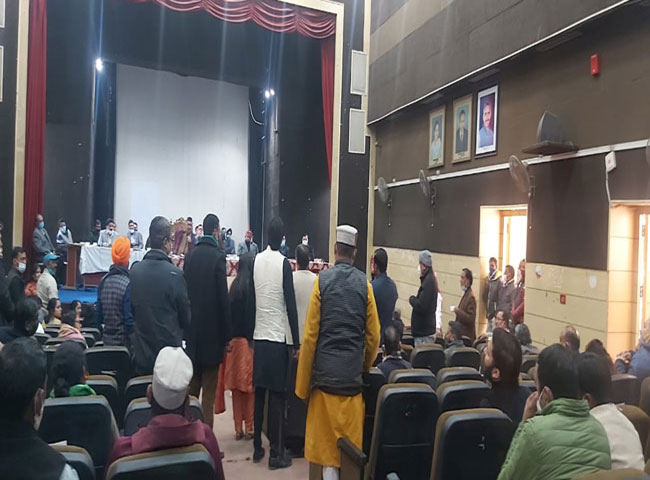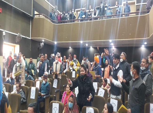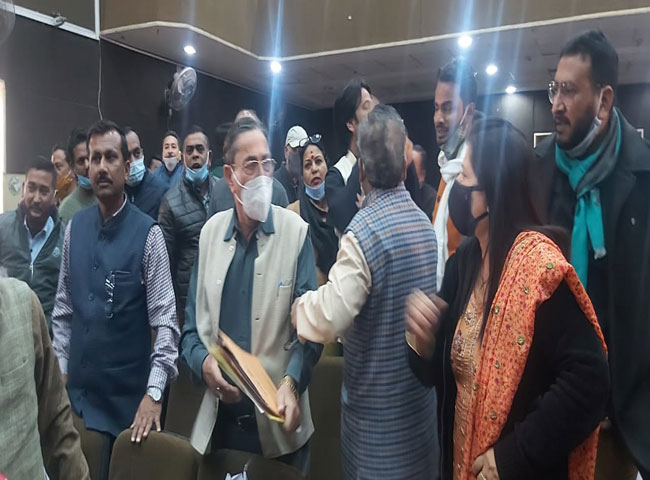 बैठक में कांग्रेस के नेता विपक्ष डा. विजेंद्र पाल सिंह जब अपने प्रस्ताव पर महापौर के साथ चर्चा कर रहे थे, तभी भाजपा के कुछ पार्षदों ने उन पर टिप्पणी शुरू कर दी। यही नहीं भाजपा पार्षदों ने डा. पाल पर बैठने के लिए दबाव भी बनाया। इस पर डा. पाल व कांग्रेसी पार्षदों का पारा चढ़ गया। असल में बैठक की शुरुआत में ही महापौर ने तय कर दिया था कि कोरोना के चलते बैठक जल्दी निबटानी है और चुनिंदा पार्षदों को ही बोलने की अनुमति मिलेगी। इसके लिए पार्षदों की सूची भी बनाई गई, लेकिन डा. पाल शुरुआत से लेकर बैठक में कई दफा उठकर बोलते रहे। भाजपा पार्षदों ने इसका विरोध किया तो कांग्रेसी पार्षदों ने बैठक के बहिष्कार का एलान कर दिया और बाहर जाने लगे। डा. पाल तो महापौर के सामने मंच तक पहुंच गए व नाराजगी जाहिर की। भाजपा पार्षद अमिता सिंह के साथ भी डा. पाल की तीखी नोकझोंक हुई। महापौर और भाजपा पार्षद दिनेश चंद्र सती ने डा. पाल को समझाया। इस दौरान करीब बीस मिनट तक बोर्ड की कार्रवाई रुकी रही। महापौर ने डा. पाल को बोलने की इजाजत दी, इसके बाद कांग्रेसी पार्षद शांत हुए और कार्रवाई आगे बढ़ी।