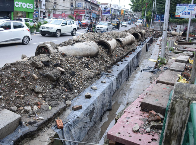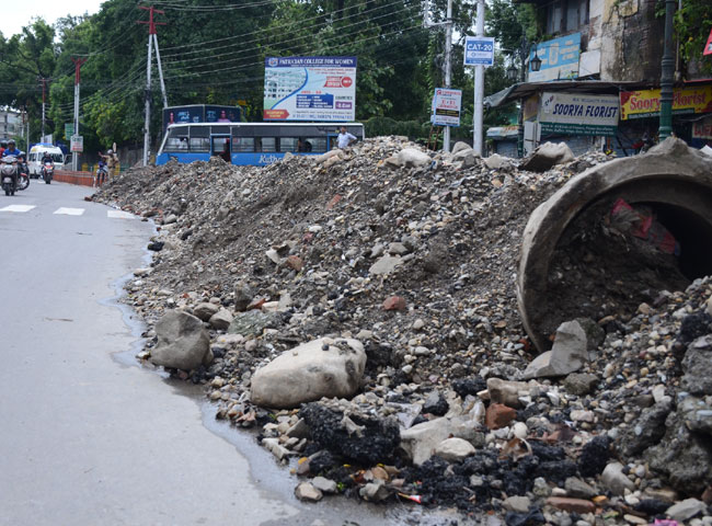 ग्लोब चौक पर खोदा नाला, मलबा वहीं डंप