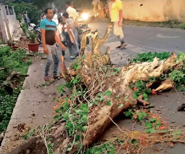 आंधी के चलते कर्जन रोड के समीप पेड़ गिर गया। हादसे में लोग बाल-बाल बचेl जागरण