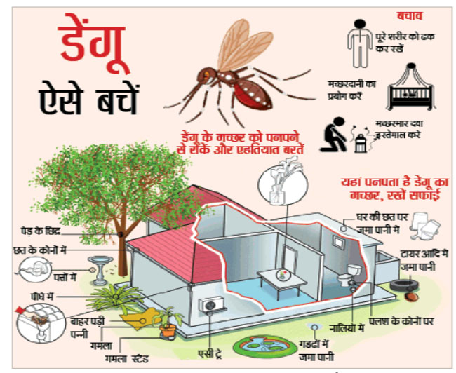 डेगू प्रभावित क्षेत्रों में स्वास्थ्य विभाग की टीम ने दौरा किया। नगर निगम की मदद से क्षेत्रों में फॉगिंग कराई गई है। सरकारी व निजी अस्पतालों में भी भर्ती होने वाले डेंगू पीड़ित मरीजों की सं या लगातार बढ़ती जा रही है। सरकारी अस्पतालों की बात की जाए तो दून मेडिकल कॉलेज चिकित्सालय के अलावा कोरोनेशन अस्पताल व गांधी शताब्दी चिकित्सालय में डेगू के मरीजों के इलाज के लिए अलग आइसोलेशन वार्ड बनाया गया है। यह सभी वार्ड मरीजों से फुल हैं। वहीं कई मरीज निजी अस्पतालों में जाकर उपचार करा रहे हैं।