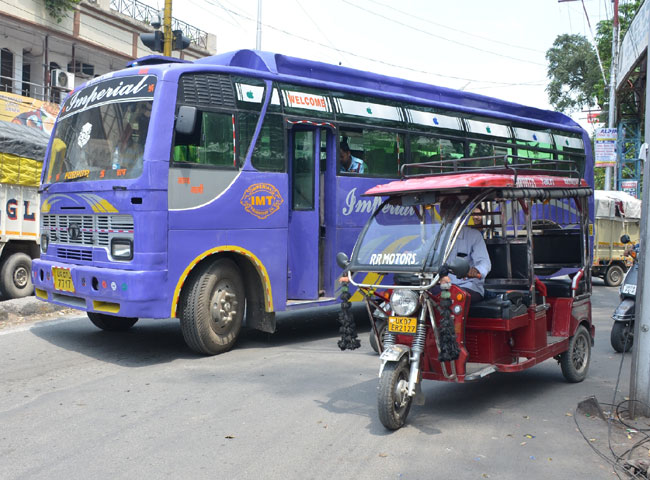 शहर का दिल कहलाने वाले घंटाघर से लेकर लालपुल तिराहे या राजपुर रोड तक, सुबह छह से रात के दस बजे तक कमोबेश एक ही नजारा है। यहां ई-रिक्शा की कतारें एक नहीं बल्कि पांच-पांच होती हैं। हालात ये हैं कि ओवरटेक करने और कहीं पर भी घूम जाने में इन ई-रिक्शा चालकों का कोई सानी नहीं। मजबूरन सड़कों और चौराहे पर यातायात पूरे दिन रेंगता रहता है।