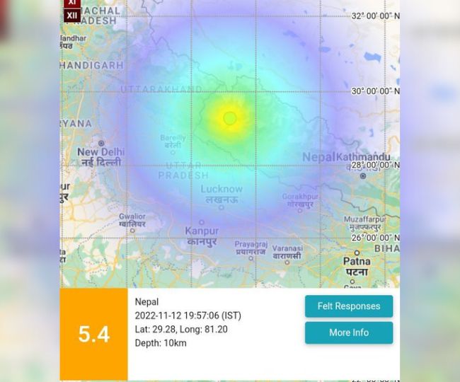 भूकंप का केंद्र नेपाल था और तीव्रता 5.4