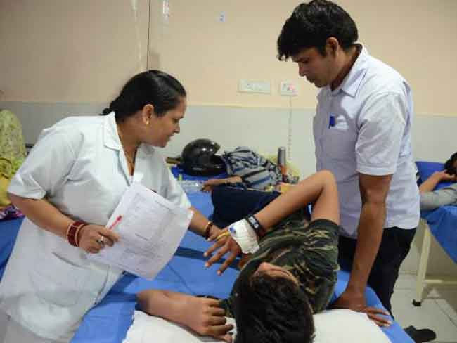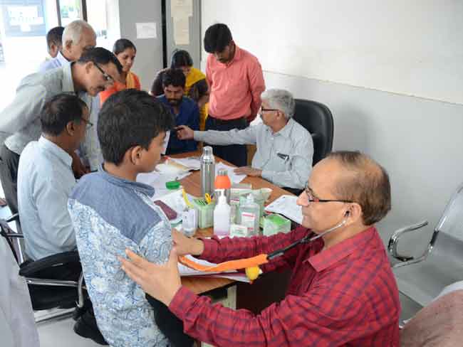 शिविर में लोगों का स्वास्थ्य परीक्षण