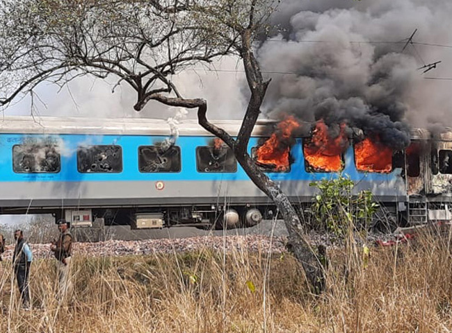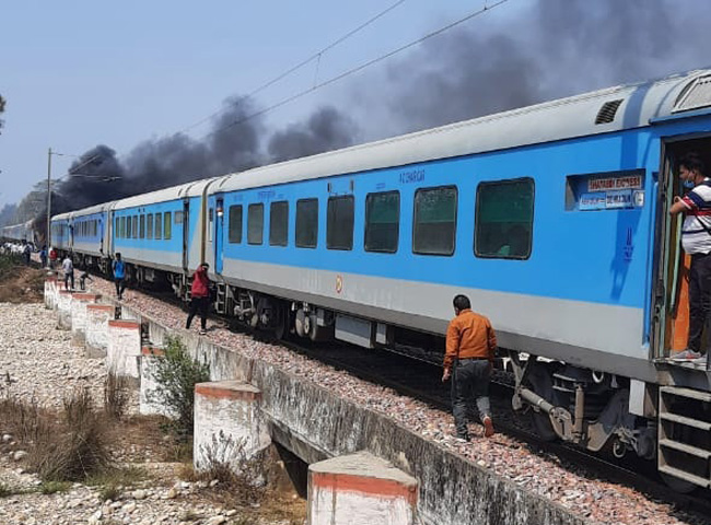 Burning Train: बीच जंगल दिल्ली से देहरादून आ रही शताब्दी एक्सप्रेस में लगी भीषण आग, देखें फोटो
