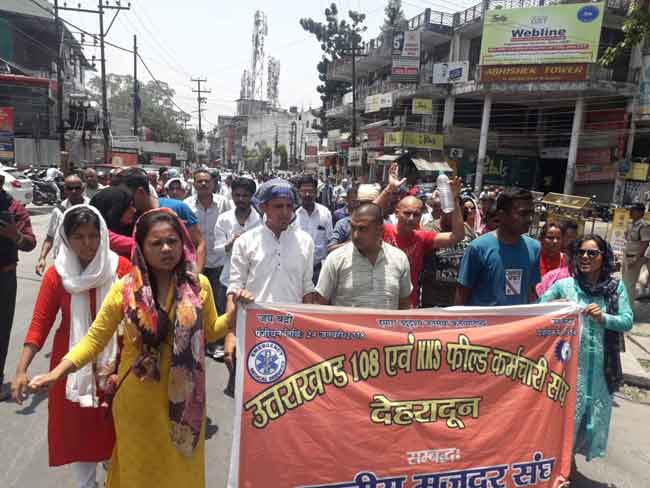 सचिवालय कूच करते 108 के पूर्व कर्मी पहले गिरफ्तार, फिर रिहा