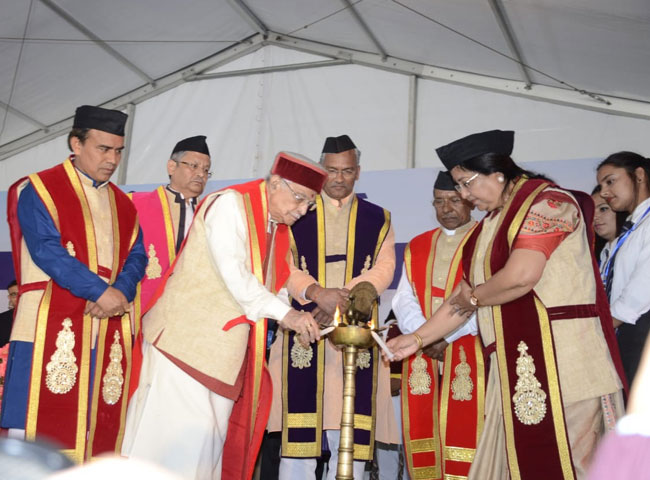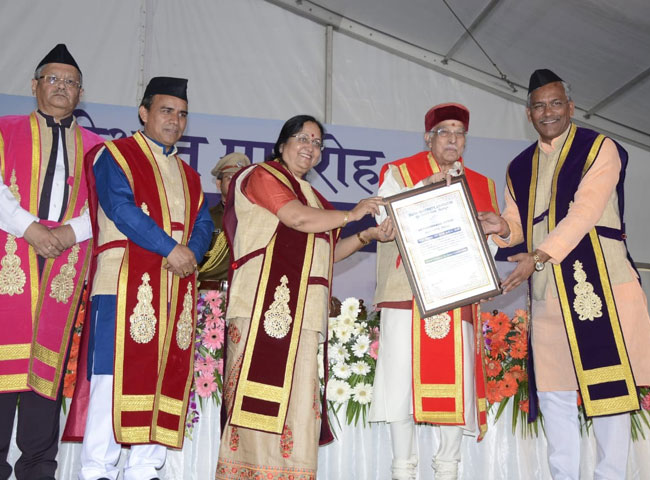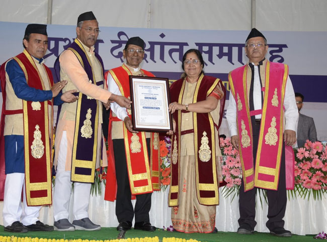 विवि के प्रथम दीक्षा समारोह में 44 छात्र-छात्राओं को स्वर्ण पदक, 617 छात्रों को स्नातकोत्तर, 380 को स्नातक व पांच छात्र-छात्राओं को पीएचडी उपाधि से नवाजा गया। कुलाधिपति बेबी रानी मौर्य ने गोल्ड मेडल से छात्र-छात्राओं को सम्मानित किया। समारोह में विशेष रूप से पूर्व केंद्रीय मानव संसाधन विकास मंत्री व कानपुर से सांसद डॉ. मुरली मनोहर जोशी को डॉक्टर ऑफ साइंस एवं उत्तराखंड के प्रसिद्ध लोक गायक नरेंद्र सिंह नेगी को डॉक्टर ऑफ लिटरेचर की मानद उपाधि से विभूषित किया गया।