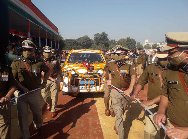 पुलिस महानिदेशक पद से सेवानिवृत्त हुए अनिल के रतूड़ी की विदाई भव्य रैतिक परेड से की गई। पुलिस जवानों की टुकड़ियों ने डीजीपी को सलामी दी। इस दौरान उन्होंने कहा कि पिछले मुझे खुशी है कि आज देश की मानवीय पुलिसों में हमारी गिनती होती है।