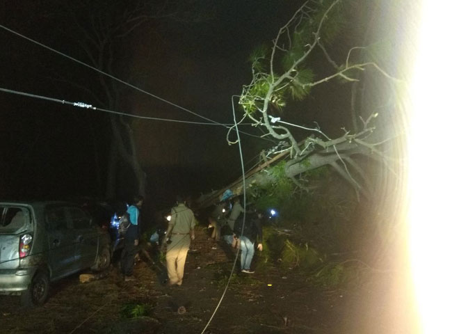 आंधी से केंद्रीय राज्यमंत्री टम्टा की गाड़ी के आगे गिरा पेड़