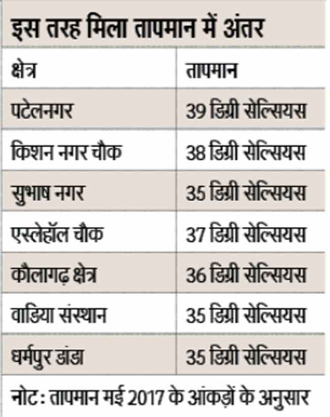 इसकी वजह यह है कि कम पेड़ों वाले क्षेत्र में प्रदूषण कण वातावरण में ही घूमते रहते हैं और सूरज की गर्मी को ये कण पकड़ लेते हैं। जिससे गर्मी वापस वायुमंडल में देरी से पहुंच पाती है। ऐसे में इन क्षेत्रों में तापमान अधिक रहता है। लिहाजा, यह स्थिति बताती है कि सिर्फ नेशनल क्लीन एयर प्रोग्राम में दून को लागू करने से कुछ नहीं होगा, बल्कि इसके समाधान को ध्यान में रखते हुए धरातल में काम करना होगा।