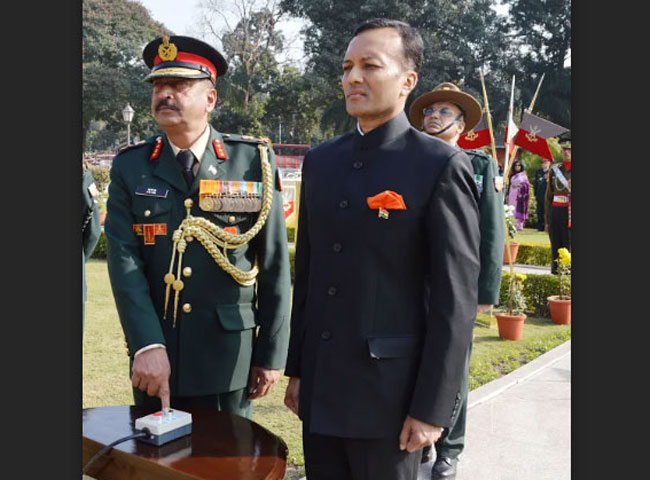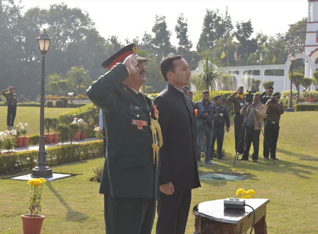आइएमए में अकादमी के कमांडेंट ले. जनरल एसके झा और फ्लैग फाउंडेशन ऑफ इंडिया के अध्यक्ष नवीन जिंदल ने 108 फीट ऊंचा तिरंगा लहराया।