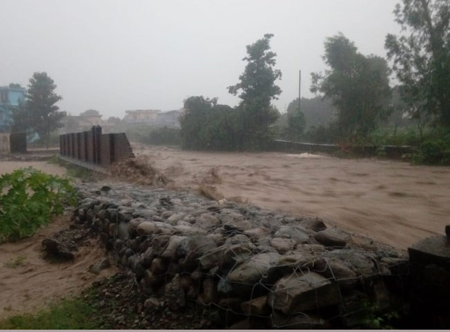 मूसलधार बारिश से गौहरीमाफी गांव में एक बार फिर बाढ़ के हालात पैदा हो गए हैं। सौंग नदी उफान पर है। हाल ही में सिंचाई विभाग द्वारा सौंग नदी की धारा को डायवर्ट करने के लिए किए गए अस्थायी उपाय ध्वस्त होने लगे है। नदी के उफान में कच्चे तटबंध का एक बड़ा हिस्सा बह गया है, जिससे गांव के 250 परिवार बाढ़ में घिर गए हैं। गांव से आवागमन का रास्ता फिर से बंद हो गया है। साहबनगर, जोगीवालामाफी, ठाकुरपुर, नेपाली फार्म में भी बाढ़ का खतरा बना हुआ है। वहीं गंगा में उफान से तटवर्ती क्षेत्रों में बाढ़ का खतरा मंडराने लगा है। लगातार हो रही बारिश से हाइवे पर जलभराव हुआ है। पहले से ही खस्ताहाल सड़क पर बारिश से कई जगहों पर बड़े-बड़े गड्ढे बन गए हैं और सफर बेहद जोखिम भरा हो गया है।
