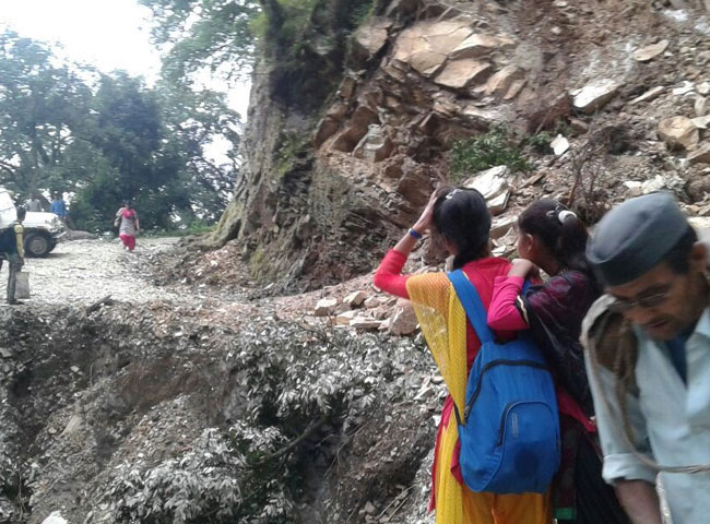 चंपावत में राष्ट्रीय राजमार्ग पर आया मलबा