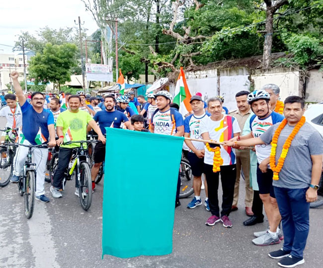 ब्लू राइडर साइकिल क्लब ऋषिकेश की ओर से 75वें स्वतंत्र दिवस के पावन पर्व पर आजादी के अमर शहीदों की स्मृति में 15 किलोमीटर की साइकिल प्रभातफेरी निकाली। सोमवार की साइकिल प्रभात फेरी को डा आरके गुप्ता, कोतवाल रवि सैनी, जयेन्द्र रमोला, दीप शर्मा ने संयुक्त रूप से हरी झंडी दिखाकर रवाना किया।
