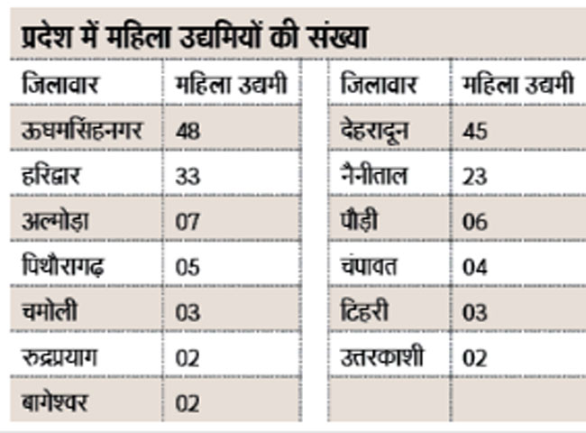 सरकारी नौकरी व अन्य बेहतर प्रोफेशन छोड़कर राज्य की ऊर्जावान महिलाएं अब औद्योगिक क्षेत्र में अपना कॅरियर संवार रही हैं। 2015 से जनवरी 2020 तक प्रदेश में 189 महिलाओं ने अपने उद्योग स्थापित किए। इन उद्योगों में 32.34 करोड़ से अधिक निवेश किया गया है। इन महिला उद्यमियों को राज्य के सूक्ष्म, लघु व मध्यम उद्यम संस्थान (एमएसएमई) से 9.16 करोड़ सब्सिडी भी दे चुका है। उद्योग निदेशक सुधीर नौटियाल ने कहा कि उद्यमिता विकास को सरकार पांच योजनाओं पर कार्य कर रही है। तीन साल में दो हजार महिलाओं का उद्यमिता से जोड़ा जाएगा।