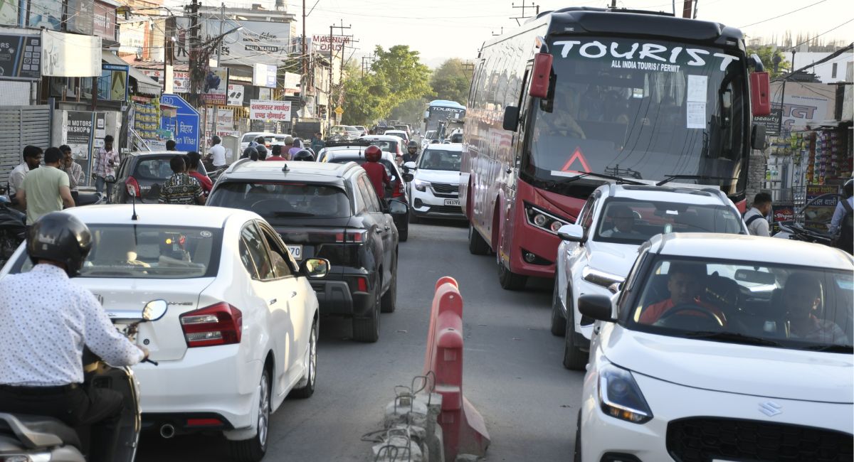 जीएमएस से सेवलाकलां जाने वाले मार्ग पर लगा लंबा जाम। जागरण