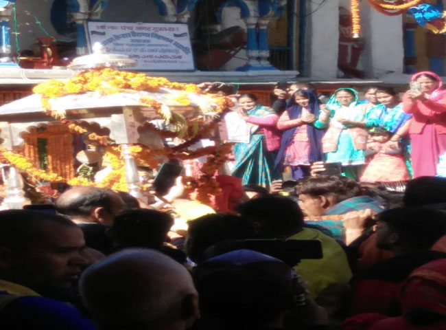 भैयादूज पर्व पर छह नवंबर को केदारनाथ धाम के कपाट बंद होने के बाद बाबा की चल विग्रह उत्सव डोली रात्रि विश्राम के लिए रामपुर पहुंची थी। सात नवंबर को डोली विभिन्न स्थानों पर दर्शन देने के बाद अपने दूसरे पड़ाव विश्वनाथ मंदिर गुप्तकाशी पहुंची। वहां सोमवार सुबह ठीक आठ बजे मुख्य पुजारी बागेश लिंग ने विशेष पूजा अर्चना के बाद बाबा की पंचमुखी भोगमूर्ति को भोग लगाया। इस दौरान आसपास के गांवों से पहुंचे भक्तों ने बाबा के दर्शन किए।