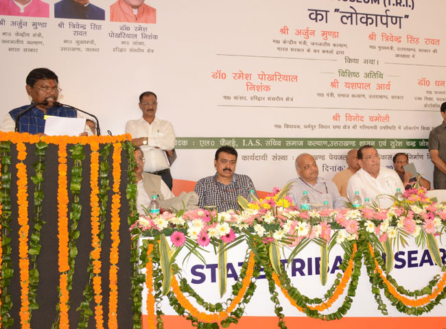 उन्होंने मुख्यमंत्री त्रिवेंद्र सिंह रावत से पुराने मित्रता संबंधों को याद करते हुए कहा कि त्रिवेंद्र सिंह रावत ने झारखंड भाजपा प्रभारी के रूप में अहम जिम्मेदारी निभाई। कहा कि जनजातीय क्षेत्रों में समग्र विकास एवं शिक्षा के बेहतर प्रयासों के लिए उत्तराखंड सरकार बेहतर कार्य कर रही है। कहा कि जनजातीय क्षेत्रों के विकास से संबंधित जो भी योजनाएं राज्य सरकार की ओर से केंद्र सरकार को प्रेषित की जाएंगी, उसमें केंद्र पूरा सहयोग करेगा। उन्होंने कहा कि यह खुशी की बात है कि उत्तराखंड के जनजाति क्षेत्रों में शिक्षा के विकास का औसत राष्ट्रीय स्तर से बेहतर है। कहा कि यह संस्थान जनजाति समाज के ऐतिहासिक समृद्ध सांस्कृतिक विरासत, मनोविज्ञान, नैतिक मूल्यों आदि को संजोने का कार्य करेगा, ताकि हमारी भावी पीढ़ी अपने गौरवपूर्ण अतीत से परिचित हो सके।