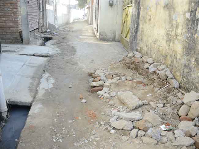 वार्ड की संकरी गलियों में डेढ़ साल पहले एडीबी ने सीवर लाइनें बिछाई थीं। अभी यह कार्य आधा-अधूरा पड़ा है। खोदी गई सड़कों पर मलबा बिखरा पड़ा है। इससे वाहन तो दूर पैदल चलना भी मुश्किल हो गया है। सीवर लाइन से उपजी समस्या खत्म भी नहीं हुई कि इन दिनों अमृत योजना से पानी की लाइन बिछाने के लिए फिर सड़कें खोद दी गईं।