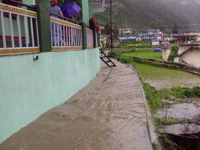 उत्तरकाशी के जोशियाडा क्षेत्र में कंसेण कालेश्वर मार्ग पर बारिश के कारण पानी भर गया है। लोगों के घर आंगन के साथ खेतों में भी बारिश का पानी जमा हो गया है। कंसेण मार्ग पर बारिश का पानी भर जाने के कारण स्कूली नौनिहालों एवं स्थानीय लोगों को खासी दिक्कतों का सामना करना पड़ रहा है। स्थानीय लोगों का आरोप है कि कालेश्वर- कंसेण मार्ग पर नगर पालिका ने निकासी की सही व्यवस्था नहीं की है। जिसके कारण हर साल यहां मार्ग पर पानी भर जाता है।