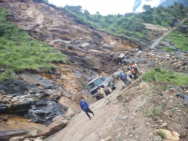 यमुनोत्री धाम प्रमुख पड़ाव जानकीचट्टी से पांच किलोमीटर दूर है। यह दूरी पैदल ही नापनी होती है। मौके पर पहुंचे जिलाधिकारी डॉ. आशीष जोशी और उत्तरकाशी के पुलिस अधीक्षक ददन पाल ने बताया कि पैदल मार्ग का 50 मीटर भाग जबरदस्त भूस्खलन की भेंट चढ़ गया है। उन्होंने बताया कि अब वैकल्पिक मार्ग तैयार किया जा रहा है।