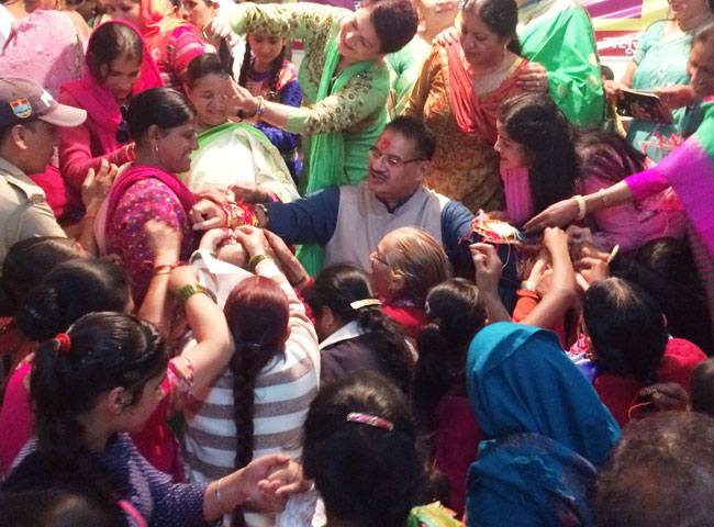 महिलाओं ने विधायक गणेश जोशी को बांधी राखी