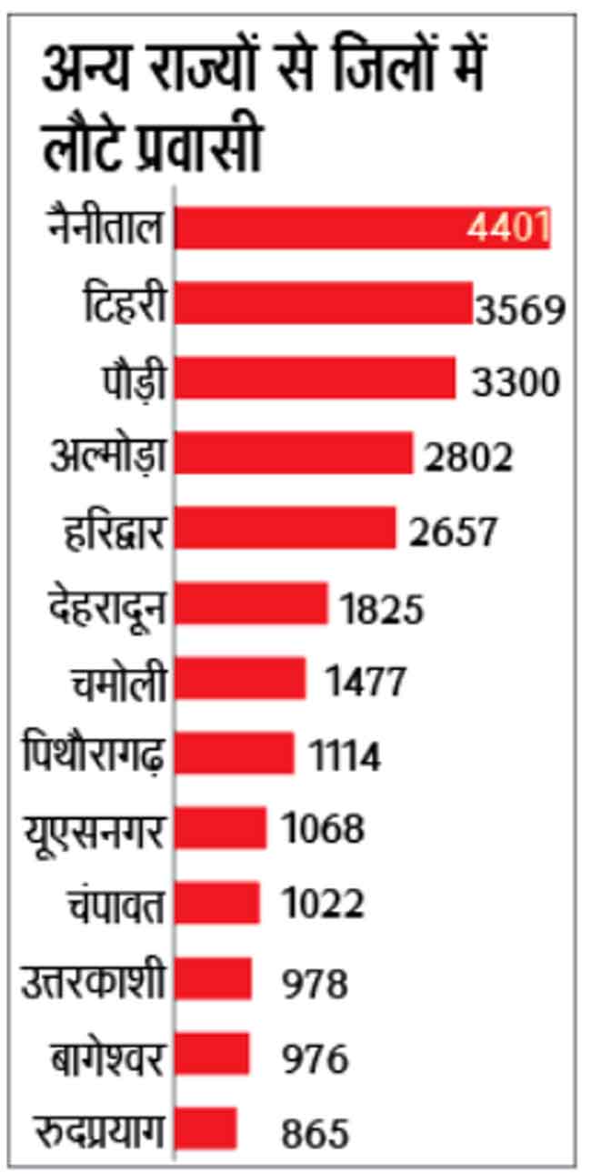 इस बीच व्यवस्था दुरुस्त करने के मद्देनजर सरकार सक्रिय हुई है। रविवार को मुख्यमंत्री त्रिवेंद्र सिंह रावत ने जिला पंचायत अध्यक्षों से फोन पर बातचीत की। उन्होंने कहा कि बड़ी संख्या में दूसरे राज्यों से प्रवासियों को लाया जा रहा है और काफी लाए जा चुके हैं। पूरी प्रक्रिया में सुरक्षा संबंधी स्वास्थ्य मानकों का पालन किया जा रहा है।