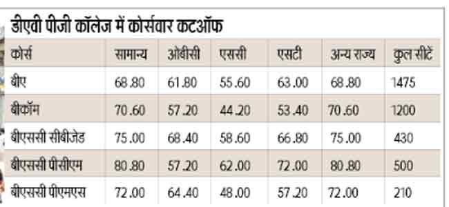 डीएवी पीजी कॉलेज में बीए बीएससी बीकॉम प्रथम वर्ष की मेरिट का इंतजार खत्म हो गया है। कॉलेज में सभी कोर्स की मेरिट 68 फीसद से ऊपर रही है।