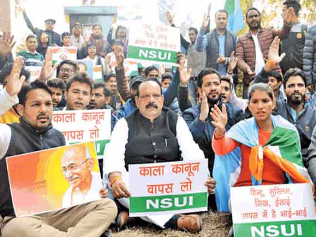 भारतीय राष्ट्रीय छात्र संगठन (एनएसयूआइ) ने नागरिकता संशोधन कानून (सीएए) व एनआरसी के विरोध में गांधी पार्क स्थित महात्मा गांधी की प्रतिमा के समक्ष धरना-प्रदर्शन किया।