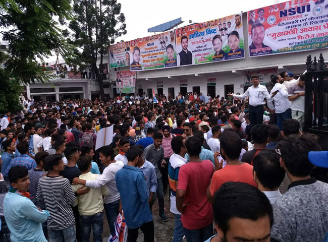 राजपुर रोड स्थित राजीव गांधी कांग्रेस भवन में सैकड़ों की संख्या में एनएसयूआइ कार्यकर्ता नौ बजे से जुटने शुरू हो गए। इस दौरान एनएसयूआइ के पूर्व प्रदेश अध्यक्ष श्याम सिंह चौहान ने केंद्र की मोदी एवं राज्य की त्रिवेंद्र सरकार पर युवाओं के साथ छलावा करने का आरोप लगाया।
