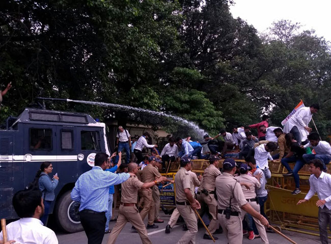 एनएसयूआइ ने किया सीएम आवास कूच, पुलिस ने की पानी की बौछार; झड़प