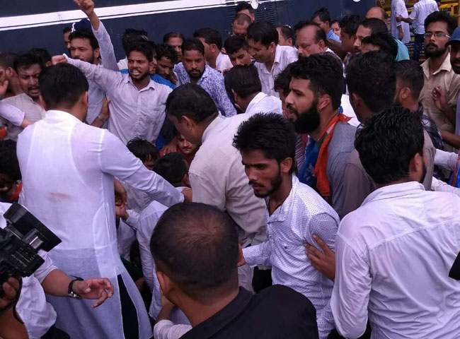 इस दौरान कुछ नेताओं की पुलिस के साथ तीखी झड़प भी हुई। करीब दो दर्जन नेता बैरिकेडिंग फांदकर सीएम आवास की ओर घुसने लगे। जिस पर पुलिस ने हल्का बल प्रयोग किया। नेताओं एवं पुलिस के बीच करीब 20 मिनट तक धक्का-मुक्की हुई। नेताओं ने बैरिकेडिंग स्थल पर ही धरना शुरू कर दिया।