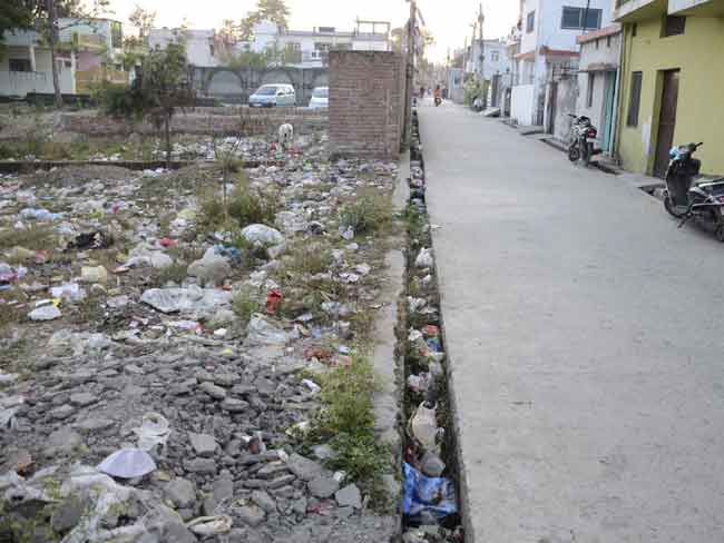 सड़क के किनारे खाली पड़े प्लॉटों पर कूड़े के ढ़ेर पड़े हुए हैं। नालियां गंदगी से भरी पड़ी हैं। स्थानीय लोगों की माने तो क्षेत्र में जूस आदि की कुछ फैक्ट्रियां हैं। कूड़ा उठान की कोई व्यवस्था न होने के कारण वह रोज यहां खाली प्लॉटों में कूड़ा डाल देते हैं।