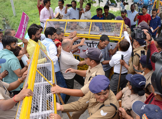 - भूमाफिया को भूमि खरीद में छूट देने का विरोध