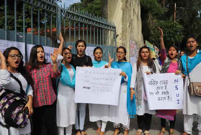 पूर्व निर्धारित कार्यक्रम के सुबह नौ बजे एनएसयूआइ के प्रदेश अध्यक्ष मोहन भंडारी के नेतृत्व में संगठन के दर्जनों कार्यकर्ता डीएवी कॉलेज पहुंचे और उन्होंने मुख्य द्वार को बंद कर दिया और प्रदेश के कॉलेजों में रिक्त शिक्षकों के पदों को नहीं भरने पर नाराजगी जताते हुए उच्च शिक्षा राज्य मंत्री के खिलाफ नारेबाजी की। करीब साढ़े 11 बजे पुलिस ने डीएवी का मुख्य गेट खोला।