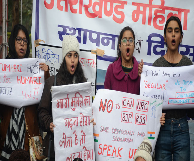 देहरादून, जेएनएन। नागरिकता संशोधन कानून (सीएए) का विरोध जारी है। गुरुवार को सीपीआइ, सीपीएम, सीपीआइ (एमएल), सपा, बसपा, पीपुल्स फोरम और महिला मंच ने गांधी पार्क गेट के समक्ष सीएए के विरोध में प्रदर्शन किया। इसके बाद जिलाधिकारी के माध्यम से राष्ट्रपति को ज्ञापन भी भेजा गया।