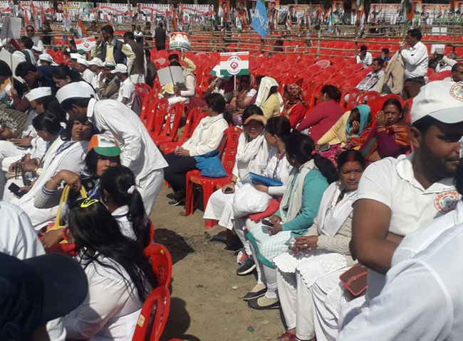 राज्य ब्यूरो, देहरादून: कांग्रेस के राष्ट्रीय अध्यक्ष राहुल गांधी ने दून के परेड मैदान में आयोजित परिवर्तन रैली में एलान किया कि इस बार केंद्र में कांग्रेस की सरकार बनने जा रही है। यह सरकार ऐतिहासिक कदम उठाएगी। हर गरीब को न्यूनतम इनकम की गारंटी दी जाएगी। अगर मोदी पंद्रह-बीस लोगों को लाखों करोड़ दे सकते हैं, तो कांग्रेस की सरकार बनने पर देश के हर गरीब को पैसा क्यों नहीं दिया जा सकता है। वहीं अपना संबोधन खत्म करने के बाद राहुल गांधी शहीदों के घर गए और परिजनों से बात की।