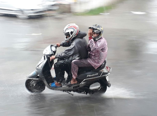 गर्मी से निजात पाने को बारिश में निकले लोग