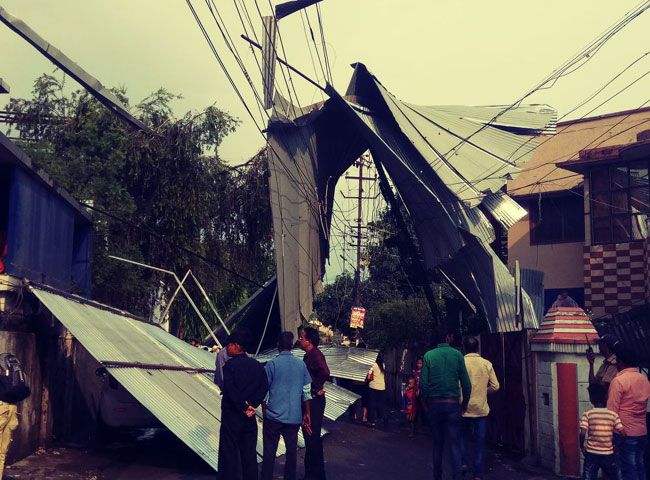 वहीं तूफान के चलते डीएल चौक के पास वैश्य नर्सिंग होम की टीन शेड नीचे गिर गर्इ। जिसकी चपेट में कर्इ वाहन आ गए। वहीं टीन शेड का आधा हिस्सा बिजली की तारों पर झूलता रहा। आपको बता दें कि इस टीन शेड की व्यवस्था नर्सिंग होम आए तीमारदारों के बैठने के लिए की गर्इ थी। गनीमत रही कि जब टीन शेड नीचे गिरा वहां कोर्इ शख्स मौजूद नहीं था।