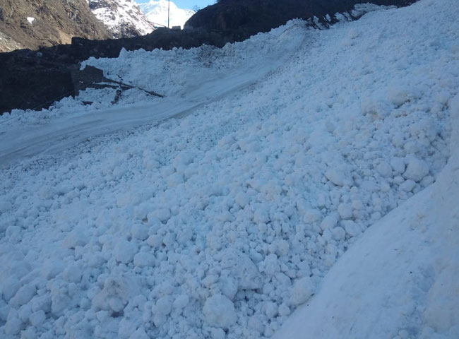 रामबाड़ा से केदारनाथ धाम तक जाने वाले मार्ग पर टप प्वाइंट, थारू ग्लेशियर, कुवर ग्लेशियर, हथनी ग्लेशियर, भैरव ग्लेशियर, लिंचौली ग्लेशियर से रास्ते पर आवाजाही जोखिमभरी बनी हुई है। यहां कई मीटर बर्फ फिसल कर रास्ते में आ रही है। इससे पुनर्निर्माण पर सबसे ज्यादा असर पड़ रहा है।