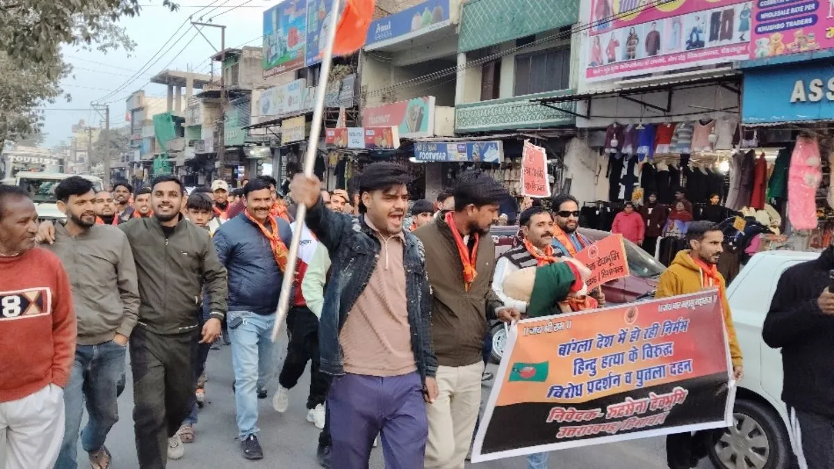 बांग्लादेश में हिंसा के विरोध में रुद्र सेना ने विकासनगर में किया प्रदर्शन, दोषियों के खिलाफ सख्त कार्रवाई की मांग