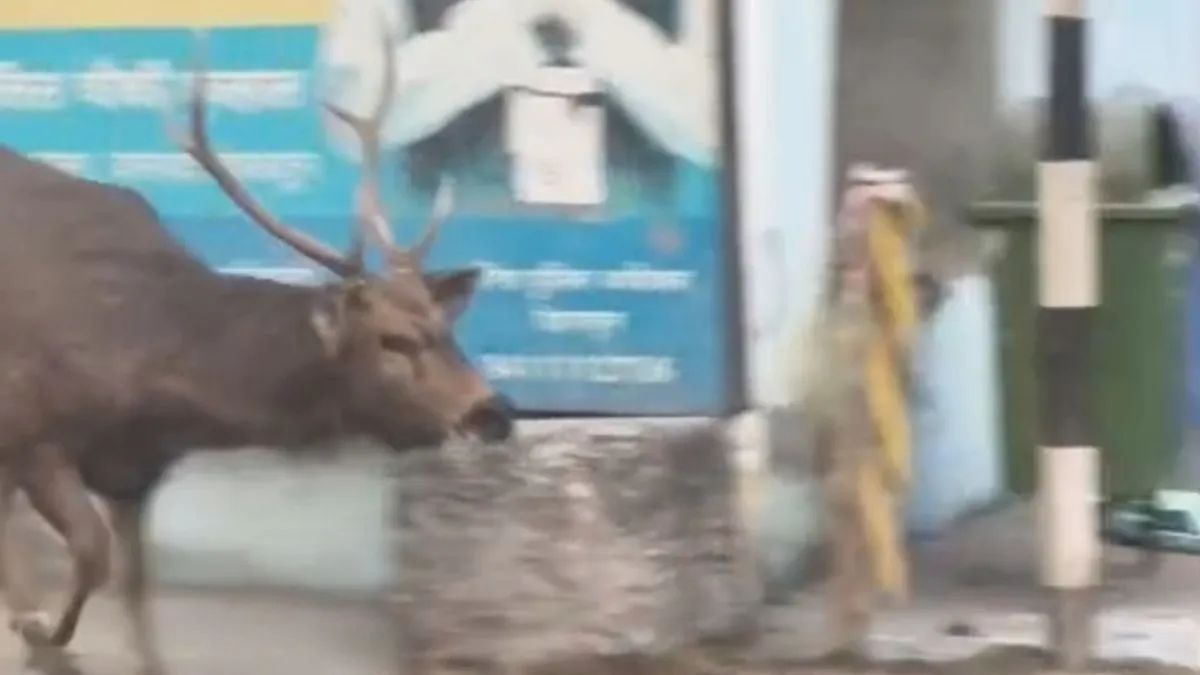 पुलिस चौकी में सांभर हिरण घुसने से मची अफरा-तफरी, बाहर निकालने में पुलिस के छूटे पसीने