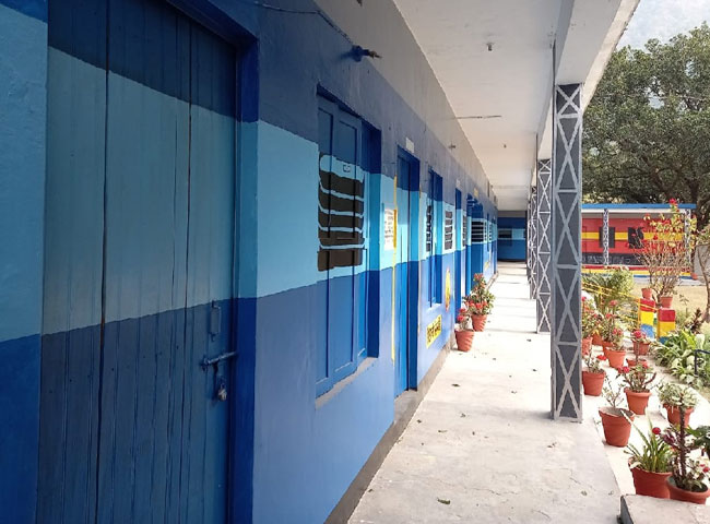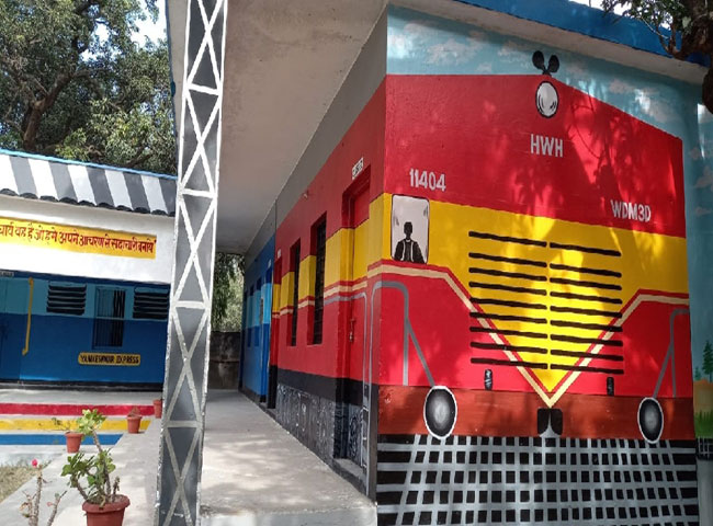 आखिरकार इंटरनेट पर मिले दक्षिण भारत के एक विद्यालय की परिकल्पना को यहां मूर्त रूप देने पर विचार हुआ। एक माह के कड़े परिश्रम के बाद विद्यालय भवन को रेलगाड़ी का रूप दिया गया। इसके अलावा विद्यालय की चहारदीवारी का निर्माण व रंग-रोगन के साथ ही शौचालय आदि को भी दुरुस्त किया गया। विद्यालय में परिवेश को इस तरह ढाला गया है कि बच्चों को खेल-खेल में ही कुछ न कुछ जानने-सीखने को मिले। इस कार्य को अंजाम तक पहुंचाने में स्थानीय निवासी महेश नागर व जीतू अवस्थी का पूरा सहयोग रहा।