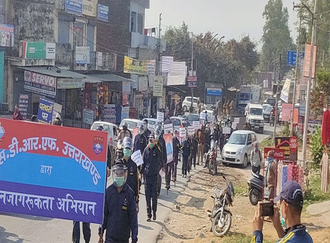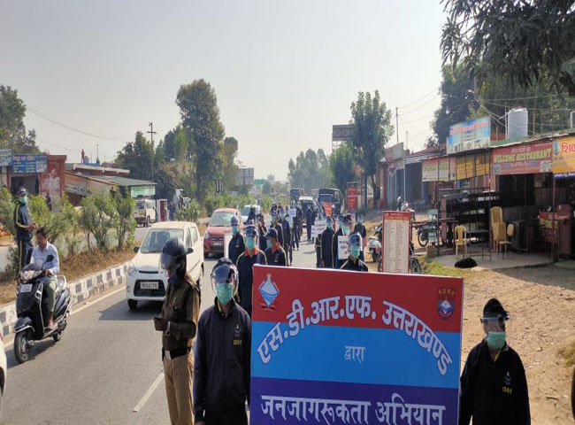एसडीआरएफ उत्तराखंड पुलिस ने प्रदेश के विभिन्न जिलों में इस तरह के फ्लैग मार्च किए जा रहे हैं साथ ही आम लोगों को कोरोना संक्रमण से बचाव के लिए इंटरनेट मीडिया, व्याख्यान, डिजिटल ट्रेनिंग ,पैम्फलेट वितरण, कोविड निर्देश पुस्तिका, वितरण, ऑयो और वीडियो के माध्यम से जागरूक किया गया।