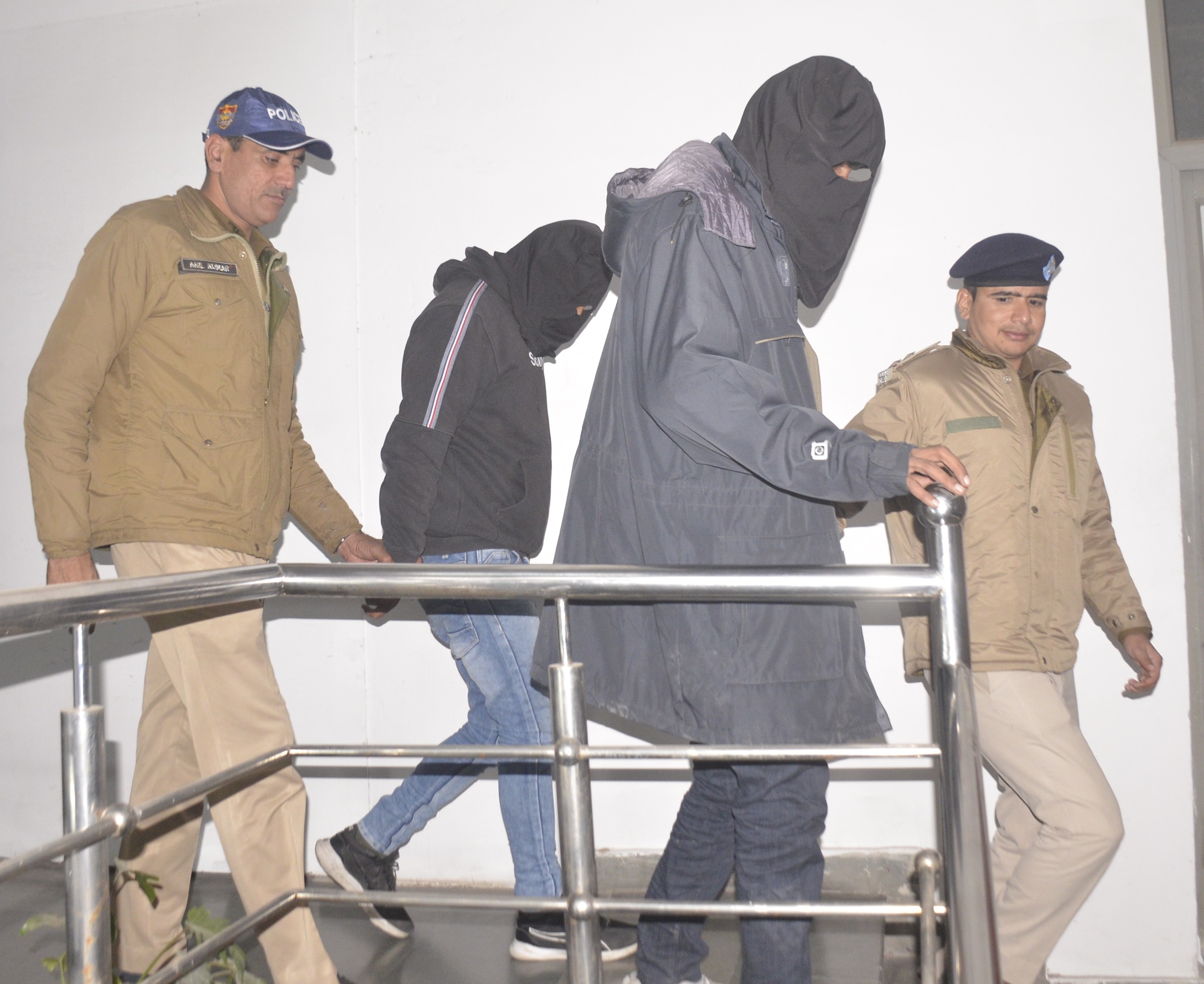 अलकनंदा एन्क्लेव में बुर्जुग अशोक गर्ग की हत्या करने वाले आरोपितों को जेल ले जाती पुलिस। जागरण