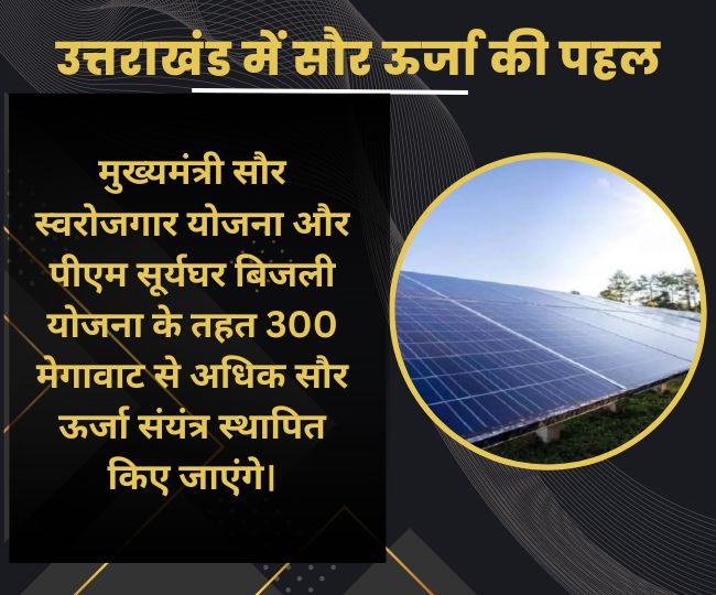 रविंद्र बड़थ्वाल, जागरण, देहरादून। सौर ऊर्जा आने वाले वर्षों में उत्तराखंड को विद्युत संकट से राहत दिलाने में महत्वपूर्ण भूमिका निभाने जा रही है। मुख्यमंत्री सौर स्वरोजगार योजना और पीएम सूर्यघर बिजली योजना के अंतर्गत प्रदेश में कुल 300 मेगावाट क्षमता से अधिक सौर ऊर्जा संयंत्रों की स्थापना की जाएगी। इस लक्ष्य को पाने में अब विश्वविद्यालय भी बड़ा योगदान देंगे।